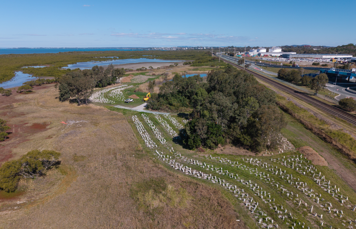 Last month, we helped facilitate one of the tallest OSOM loads seen at the Port – a Reactor Top sitting at approximately 7.86m total transport height and weighing 95T. The highly controlled operation required the load to travel from AAT on the wrong side of Port Drive and Captain Bishop Bridge to exit the port precinct safely and highlights the continuing and major role of the Port in facilitating the efficient movement of freight for Queensland. Collaboration was critical, with a significant amount of planning and coordination required between PBPL, Deugro Projects, TPH Project Solutions, Russell Transport, Avada Traffic, Ventia, Department of Transport and Main Roads, QPS and AAT. Congratulations to everyone involved. Take a look at the impressive OSOM load here. Whyte Island Rehabilitation Project